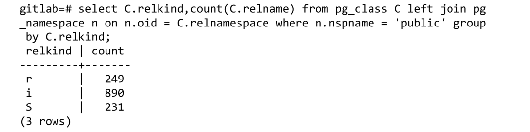 用标准PostgreSQL部署的GitLab包含的数据库schema为: